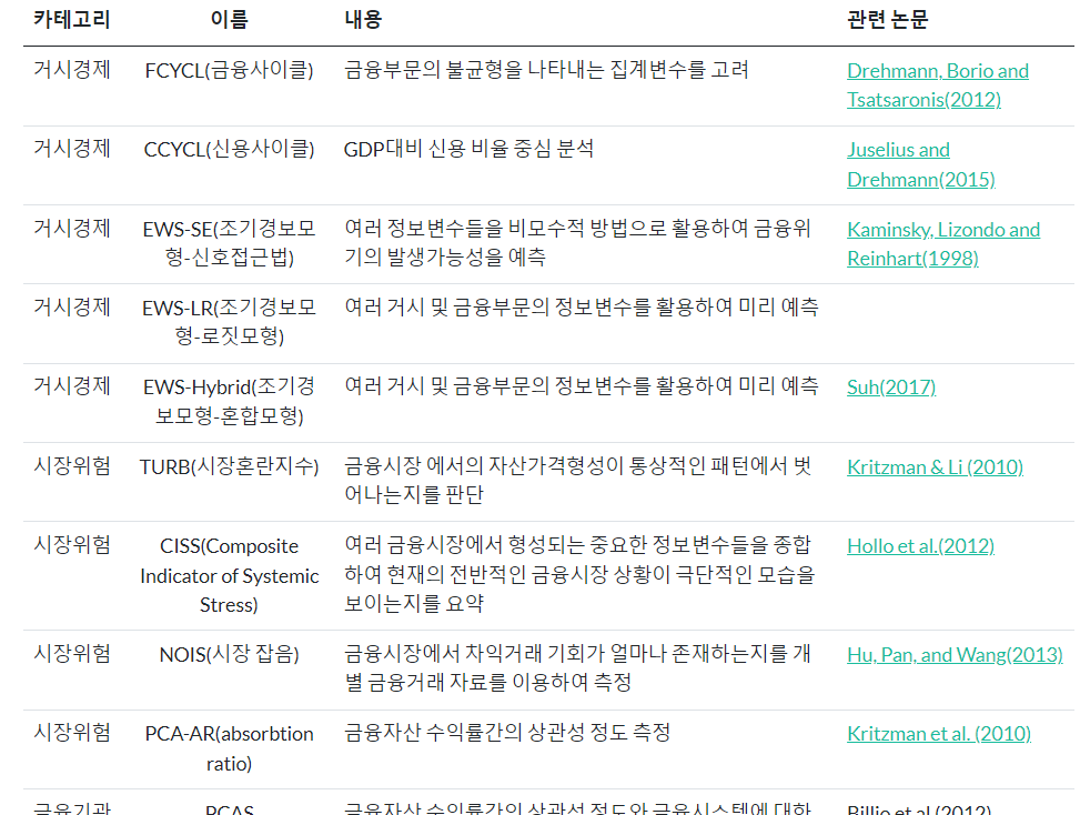 시스템 리스크 분석: (2-1) 거시경제지표를 활용한 경제전체 위험도 측정 방법