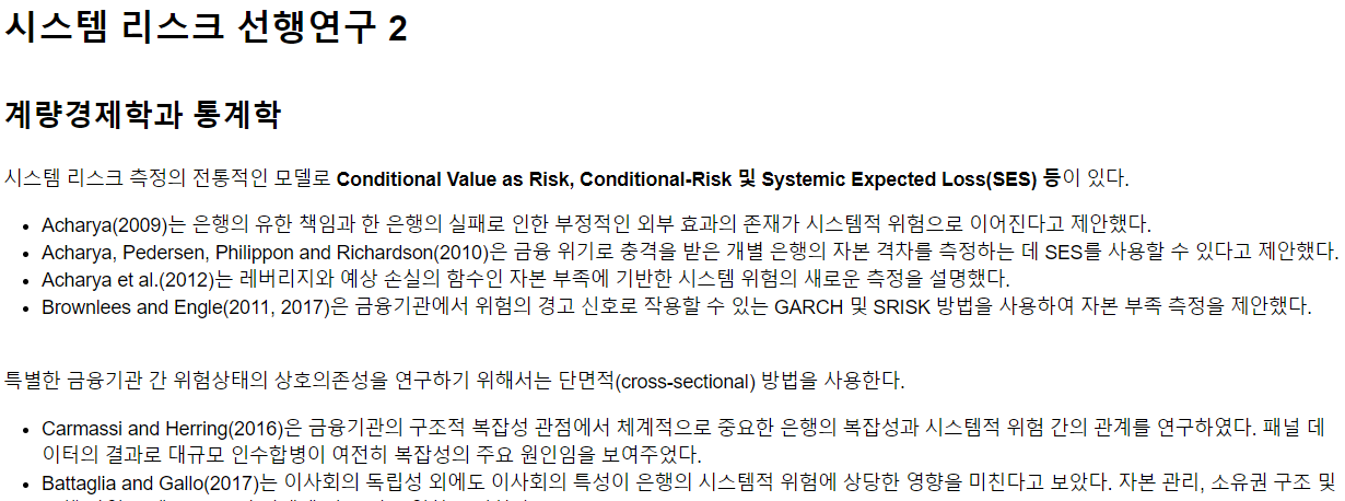 시스템 리스크 분석: (2) 시스템 리스크 측정 방법 - 선행연구 요약