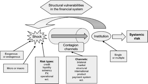 금융중개기능이 원활히 작동하지 못하여 경제성장과 사회후생에 심각하게 손상을 줄 정도의 심각한 금융불안정을 지칭하는 시스템적 사건이 발생할 위험 - 유럽중앙은행(ECB(2010))