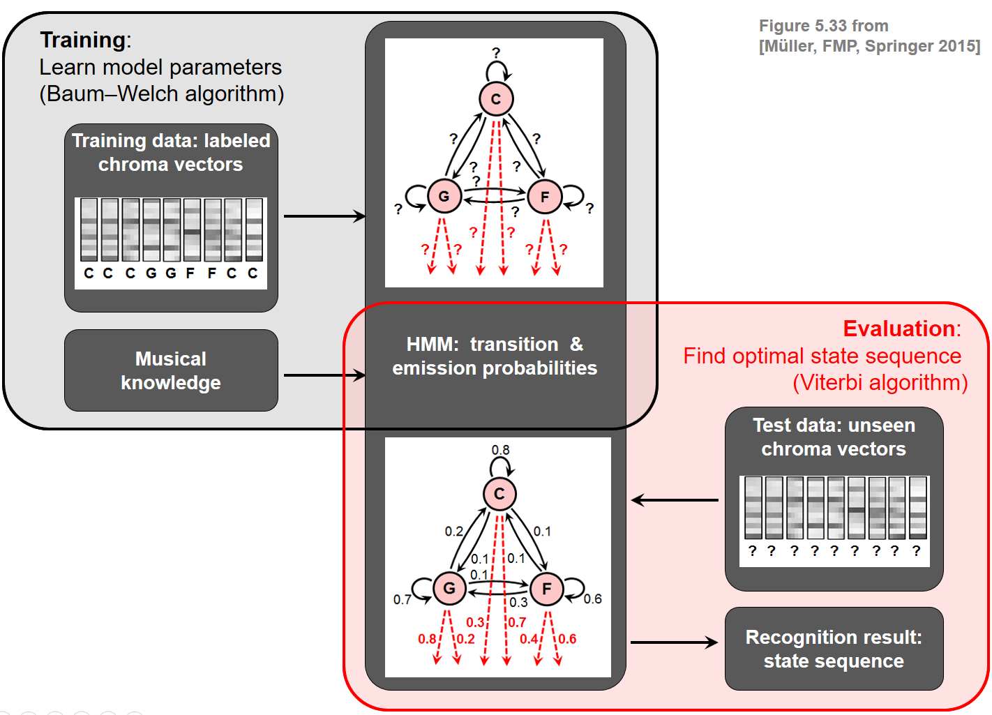 HMM(Hidden Markov Model)과 Viterbi 알고리즘을 설명하고 HMM 기반 화음 인식 방법과 그 예를 다룬다.