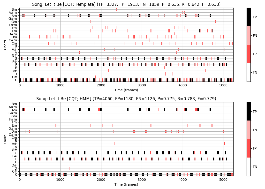 간단한 예시로 비틀즈의 노래를 이용해 화음 인식 절차를 확인해보고, 결과를 해석해본다.