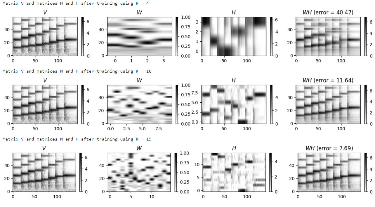 NMF 기반의 오디오 분해 방법을 살펴본다. 행렬 분해 기법인 NMF를 설명하고, 음악 정보를 활용한 스펙트로그램의 분해 등을 다룬다.