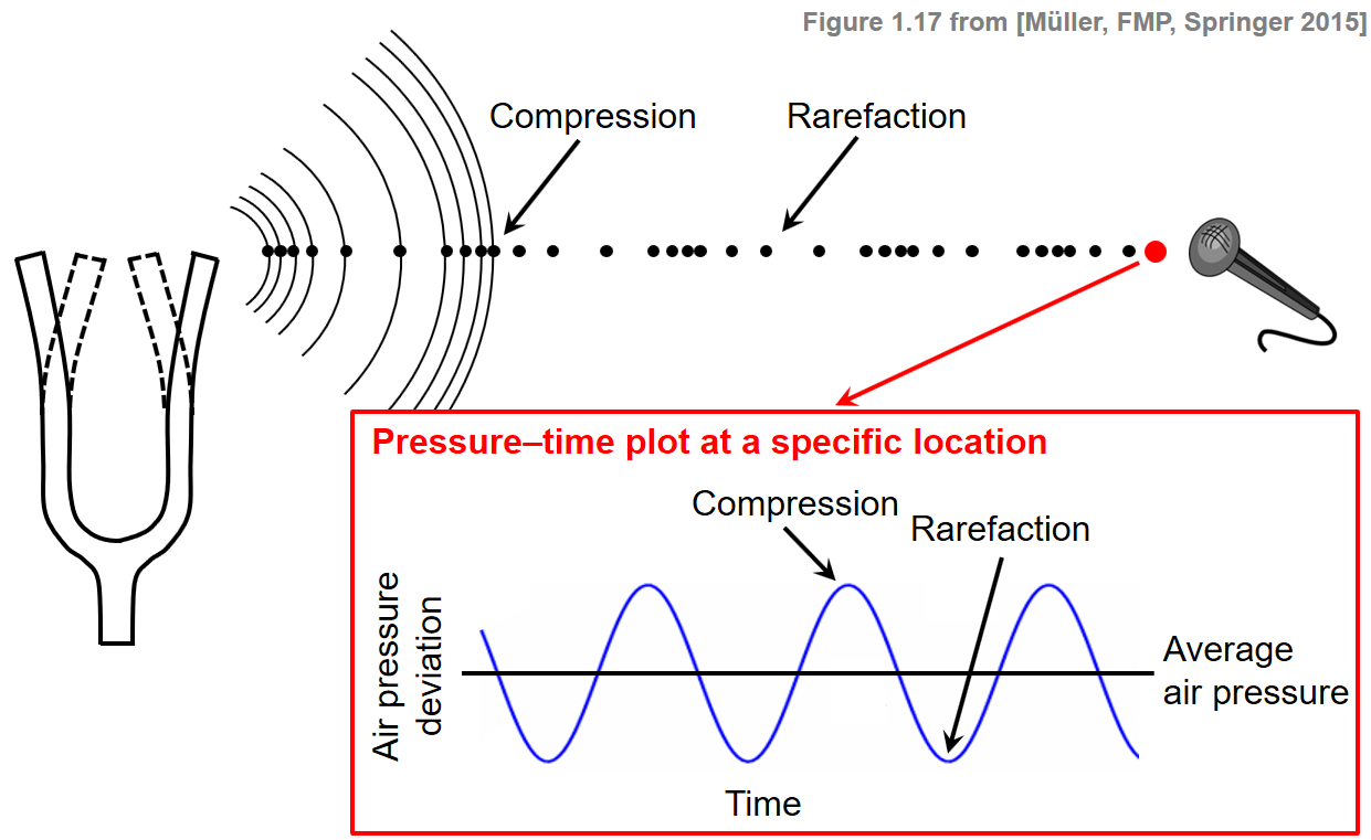 - 교류 압력(alternating pressure)은 공기를 통해 파동으로 청취자 또는 마이크로 전달된다. 이는 사람에 의해 소리로 인식되거나 마이크에 의해 전기 신호로 변환될 수 있다.