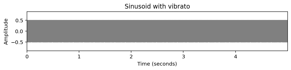 x_vib, t = generate_sinusoid_vibrato(dur=dur, Fs=Fs, amp=amp, freq=freq, vib_amp=6, vib_rate=5)