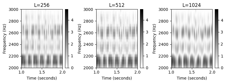 이제 동일한 제로-패딩 전략을 사용하여 STFT의 주파수 그리드 해상도를 높이는 방법을 보자.