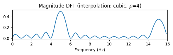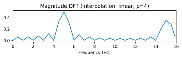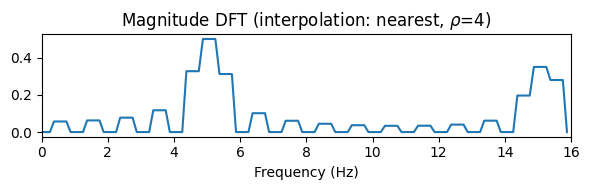 주파수 그리드의 밀도를 높이기 위한 한 가지 아이디어는 인위적으로 신호에 0을 추가하여 DFT의 크기를 늘리는 것이다.