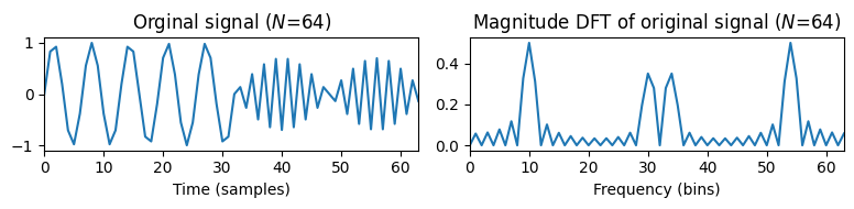 \(x\in \mathbb{R}^N\) 를 길이 \(N\in\mathbb{N}\)의 샘플 \(x(0), x(1), \ldots, x(N-1)\)의 이산 신호라고 하자.