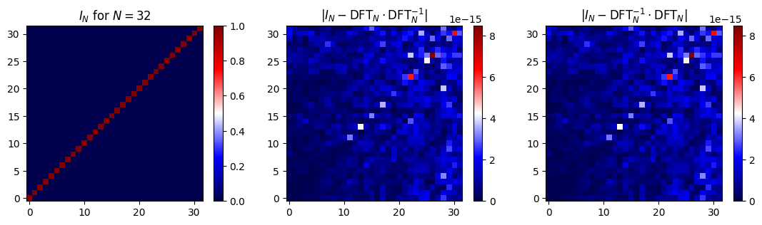 다음 예는 \(\mathrm{DFT}_N \cdot x\)를 \(\mathrm{DFT}_L \cdot \tilde{x}\)와 비교한다.