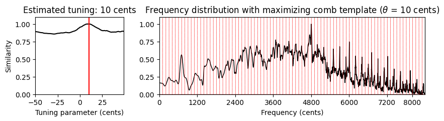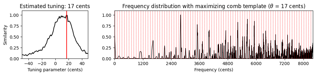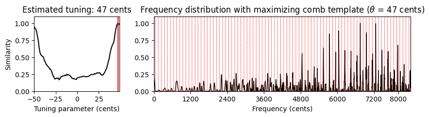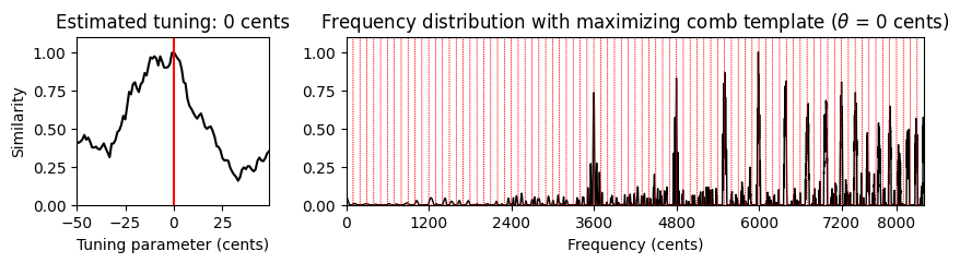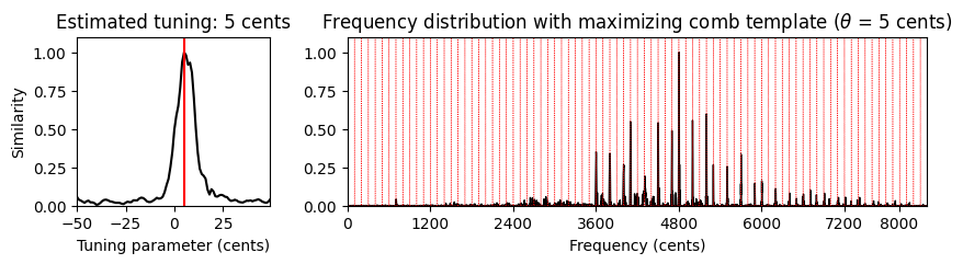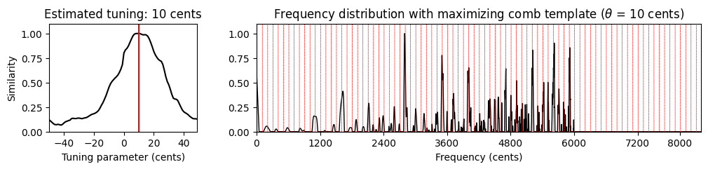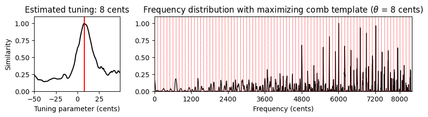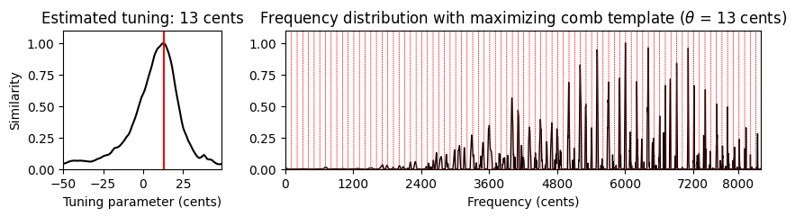 print('Estimated tuning: %d cents' % theta_max)Estimated tuning: 8 cents