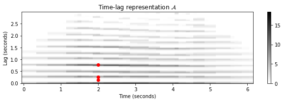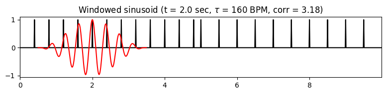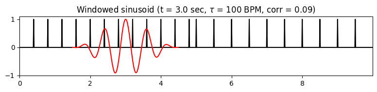 직관적으로 \(\mathcal{T}(t,\tau)\) 값은 신호가 시간 인스턴스 \(t\) 근처에서 주어진 템포 \(\tau\)의 로컬 주기 펄스(pulse)를 포함하는 정도를 나타낸다.
