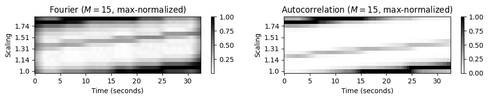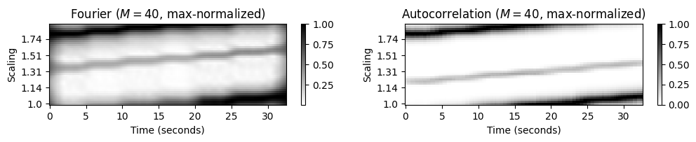title_F = r'Fourier ($M=%d$, max-normalized)'%octave_bin