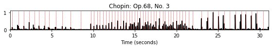 plot_sonify_novelty_beats(path_data+fn_wav, path_data+fn_ann, title)