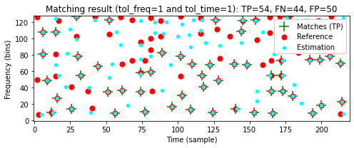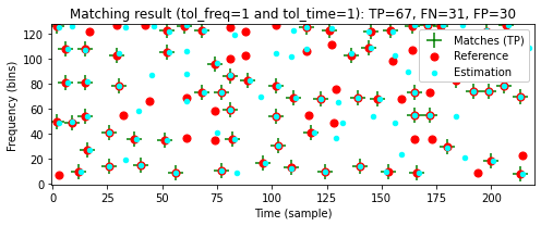 plt.legend(['Matches (TP)', 'Reference', 'Estimated'], loc='upper right', framealpha=1)