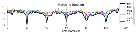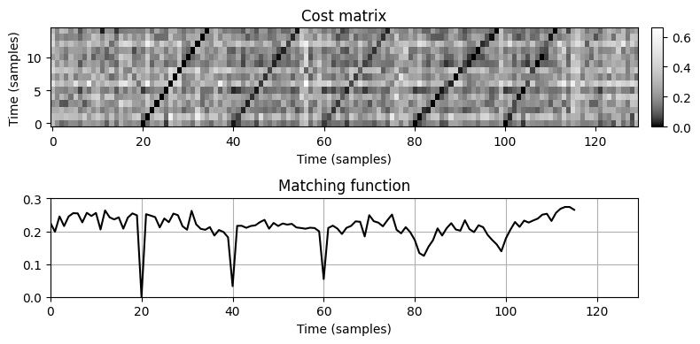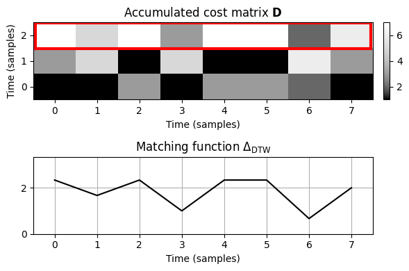 Delta_cyc[k, :], C, D = compute_matching_function_dtw(X_cyc, Y, stepsize=stepsize)