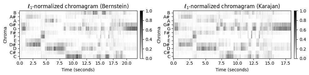 title2=r'$\ell_1$-normalized chromagram (Karajan)'